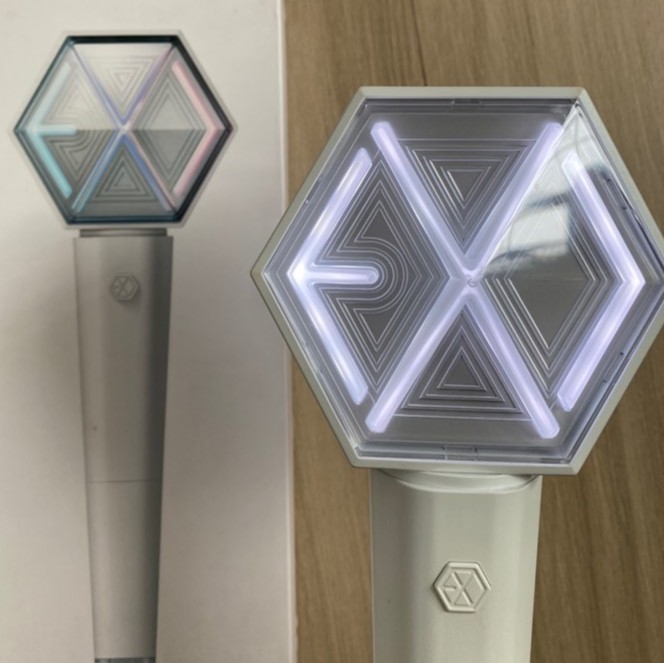 Versi 3.0 : Desain klasik dengan bola lampu di atasnya yang memiliki logo EXO heksagonal di dalamnya. Melambangkan identitas dan superpower unik dari EXO. Warna utamanya adalah putih dan perak.